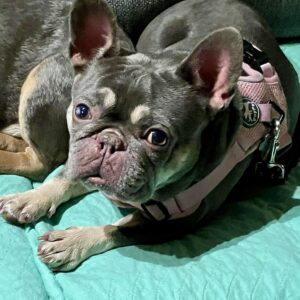 Now it’s time to get to know me. I’m 3 ½ years old. I’m 22lbs of perfection. I love walks but can get excited when I see other dogs, my fosters are working on this with me. I will potty on walks, but I also potty in the back yard, so a fenced in yard would be great, but not a deal breaker. I love my super chill Frenchie foster brother and cuddling next to him. I love chewing on my benebones and chasing balls. I have a lot of energy and love to be in on the action! Did I mention snuggling?