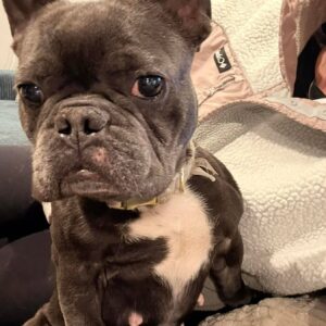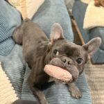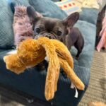 Hi, I’m Roxy—part Frenchie, part cuddle expert, part neighborhood security patrol. The vets think I am about 2 years old and I absolutely love humans. I did have a litter in my past life before I came into rescue. Like… if you have hands for petting, we’re already best friends. I take my toys very seriously, especially stuffies and wubbas (made by Kong)—and I bring 110% enthusiasm to playtime. I’m also a puzzle feeder pro because I like to eat smart and keep my tummy happy.