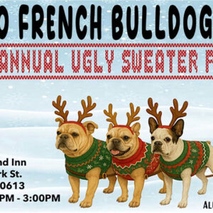 Come join us for our 7th annual Ugly Sweater Party! Let’s make this year our best thus far. Every ticket purchased helps Chicago French Bulldog Rescue to continue to rescue frenchies in need. We can not continue to do all that we do without your generosity and support.